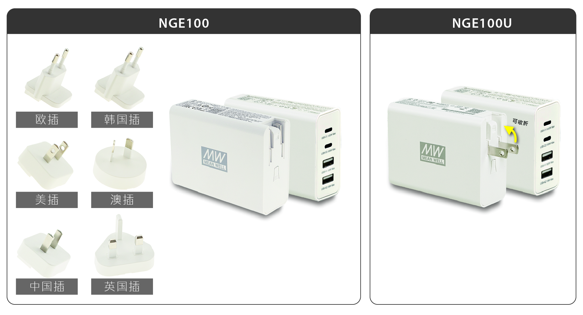 NGE100U 美规版:AC 插头可收摺,不可变换其他国家插头