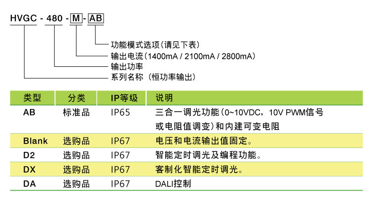 HVGC-480系列可接受超宽AC电压输入范围(180~528VAC),全机采用金属外壳、内部灌满导热硅胶、可提供IP65/IP67高防尘防水等级与-40~+90℃宽范围工作温度等特性。在自然风冷散热条件下(无风扇设计)最高工作效率可达94.5%,且具备多种调光功能及长达五年的保固期,推出前即广受市场客户期待,并甫获得2018年台湾精品奖的双重肯定。非常适用于植物生长灯、天井灯、集鱼灯、球场灯等LED室内外照明应用。