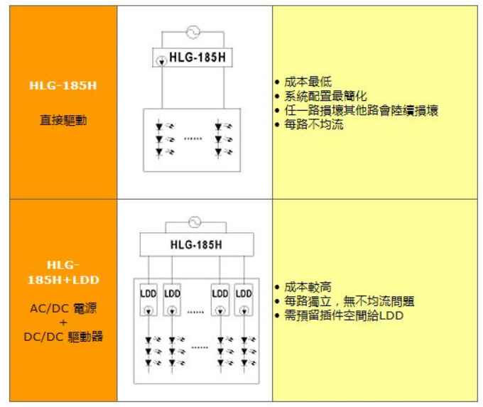 同上题,如灯具设计上拟采LED灯条串接定电流驱动器之方式,要如何选择适用的电源?